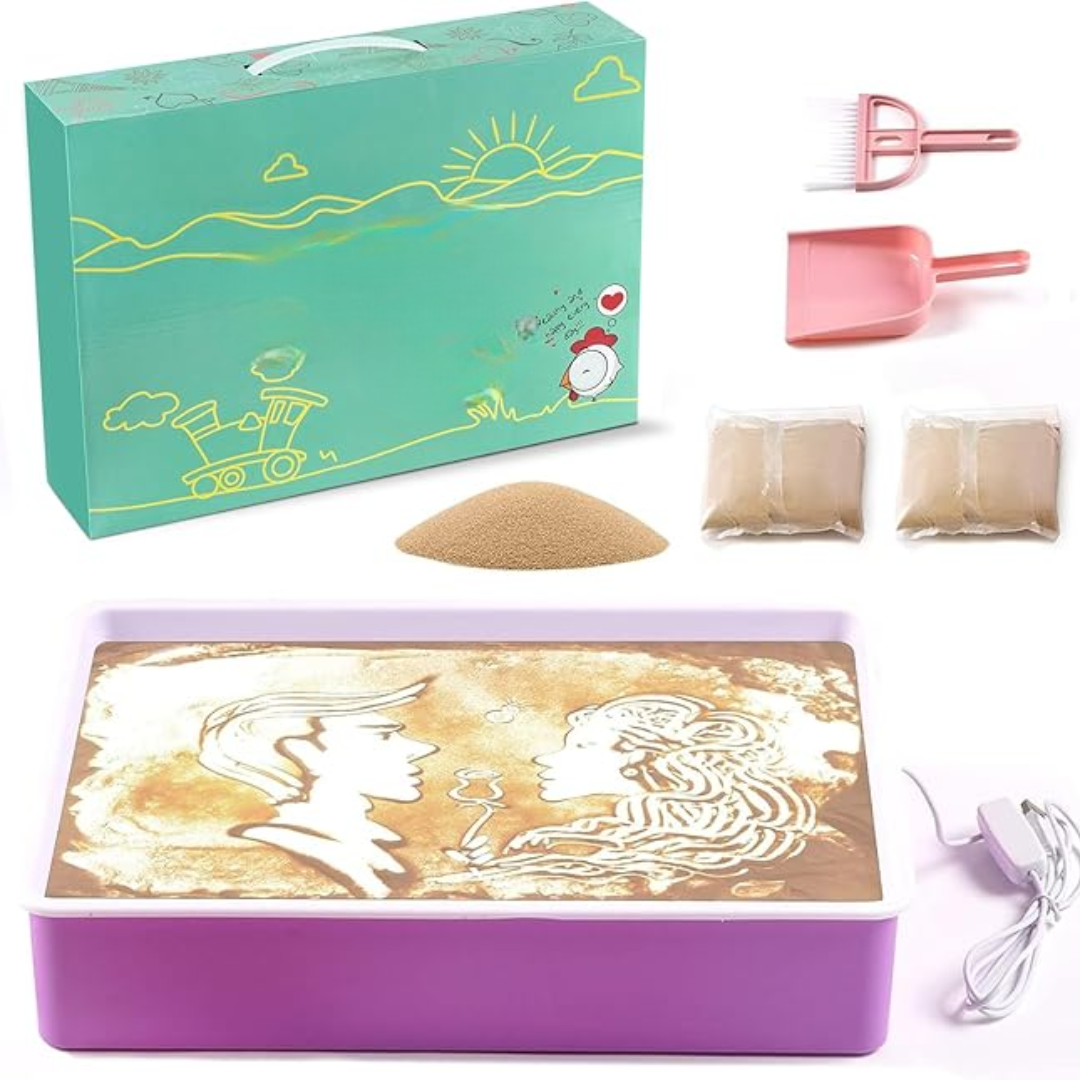 ArtifyGlow vereint Kreativität und Entspannung mit seiner dynamischen Sandkunst-Funktion, die es Ihnen ermöglicht, mühelos sich ständig verändernde Designs zu gestalten. Die integrierte sanfte Beleuchtung erhellt Ihre Sandkreationen wunderschön und macht sie zu einer faszinierenden Ausstellung für jeden Raum. Mit verschiedenen Sandfarben und Mustern können Sie Ihre Kunstwerke personalisieren und endlose kreative Möglichkeiten genießen. Entwickelt, um leicht, langlebig und einfach zu bedienen zu sein, ist ArtifyGlow perfekt für künstlerischen Ausdruck und zur Verbesserung der Feinmotorik. Schalten Sie einfach die Lampe ein, wählen Sie Ihren Sand aus und lassen Sie Ihrer Kreativität freien Lauf, während Sie leuchtende Meisterwerke erschaffen.