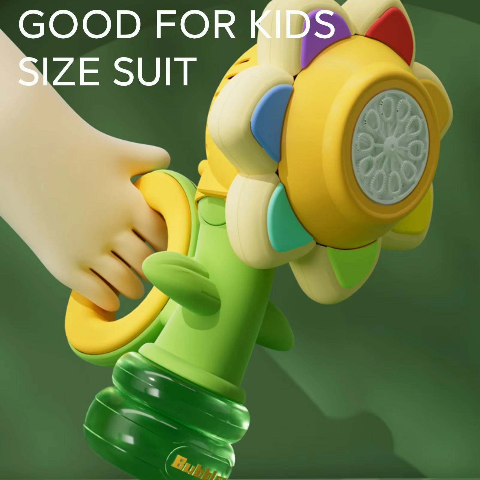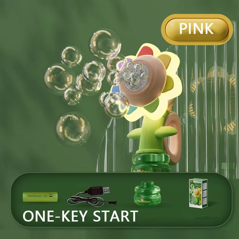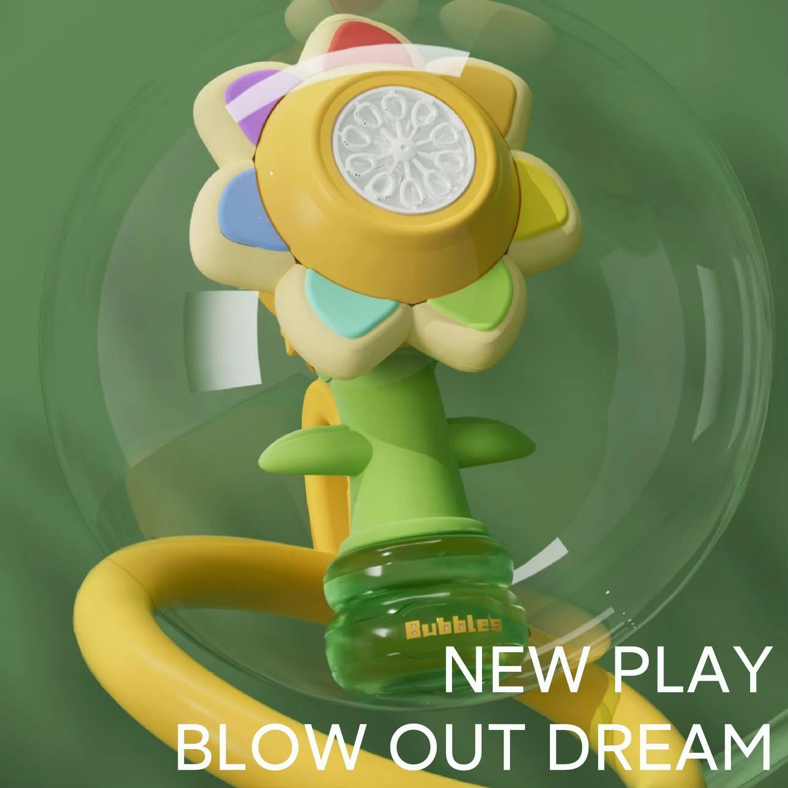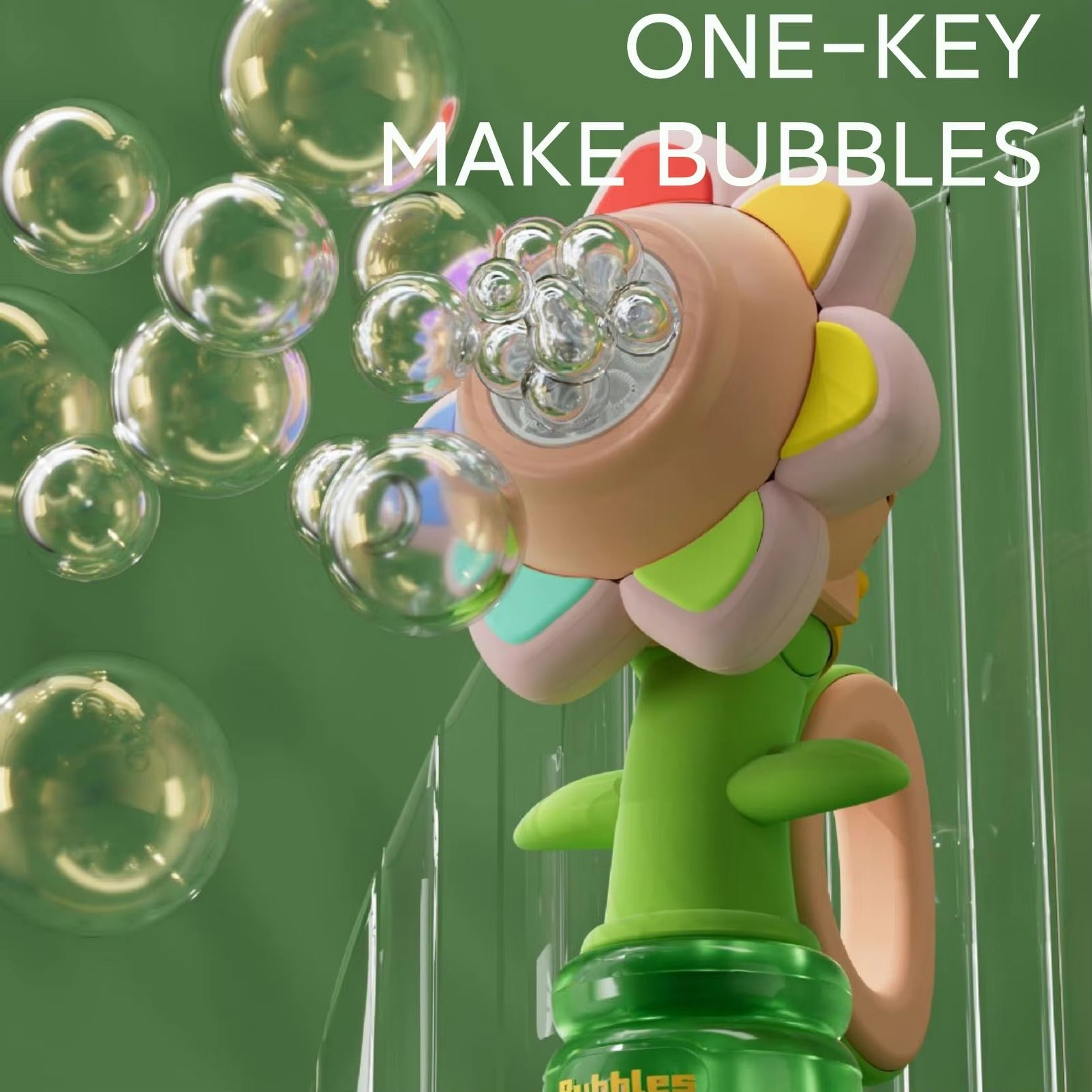 Geformt wie eine fröhliche Blume, lässt dieses Spielzeug Blasen frei, die schweben, funkeln und Kichern hervorrufen. Es ist Sommerzauber in Bewegung.