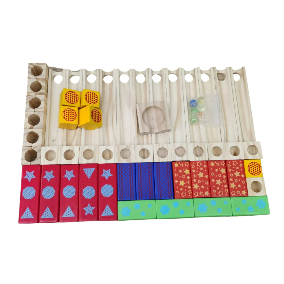 Entfesseln Sie den inneren Ingenieur Ihres Kindes mit BuildBrilliant! Diese fesselnde Holzmurmelbahn verwandelt die Spielzeit in eine faszinierende Erkundung von Schwerkraft, Geschwindigkeit und Physik. Wenn Kinder ihre eigenen komplizierten Bahnen entwerfen und konstruieren, fördern sie ihr logisches Denken, ihre Feinmotorik und ihre Problemlösungsfähigkeiten - und haben dabei unendlich viel Spaß.