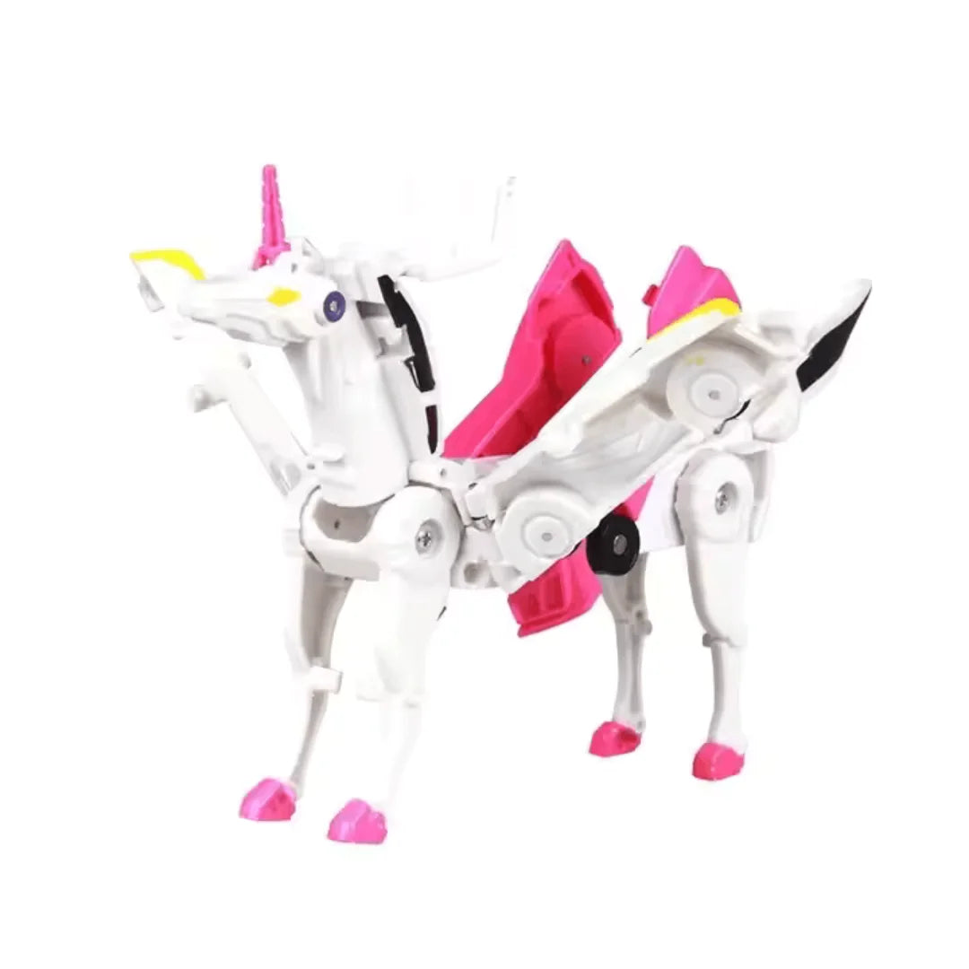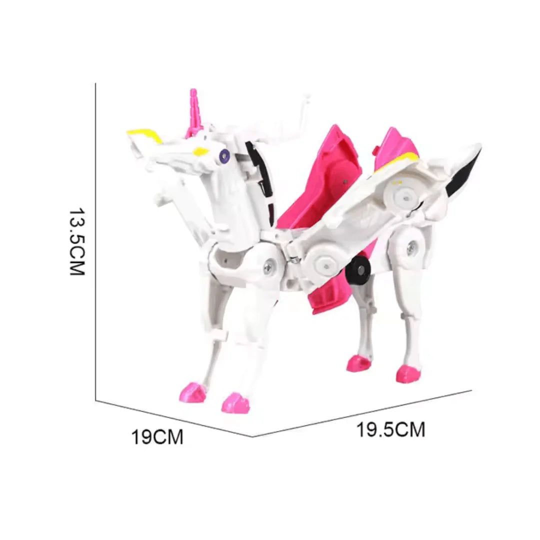 MagicShift™ Transforming Unicorn Car - ein magisches 2-in-1-Spielzeug, das den Spaß von Rennautos mit der Fantasie eines Fabelwesens verbindet. Einfach umdrehen und zusehen, wie es sich in einen Einhorn-Roboter mit beweglichen Beinen, bunten Flügeln und dem typischen Horn verwandelt!