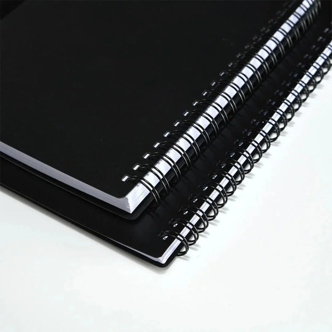 Material: Wiederbeschreibbare Filmseiten, Spiralbindung aus Kunststoff