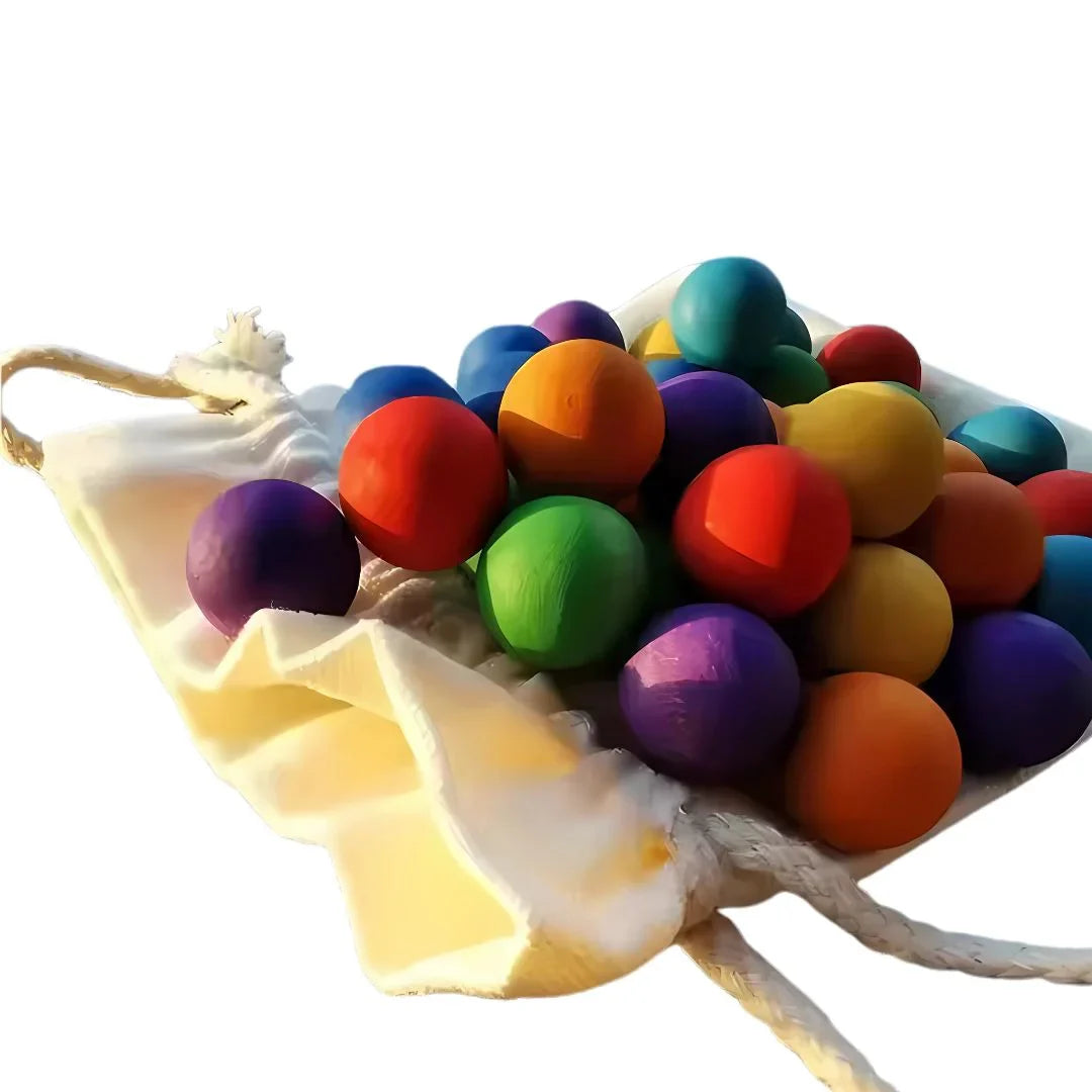 35 massive Holz-Kugeln in Regenbogenfarben