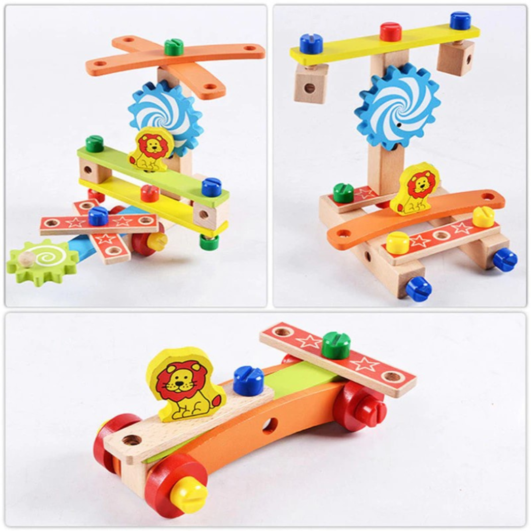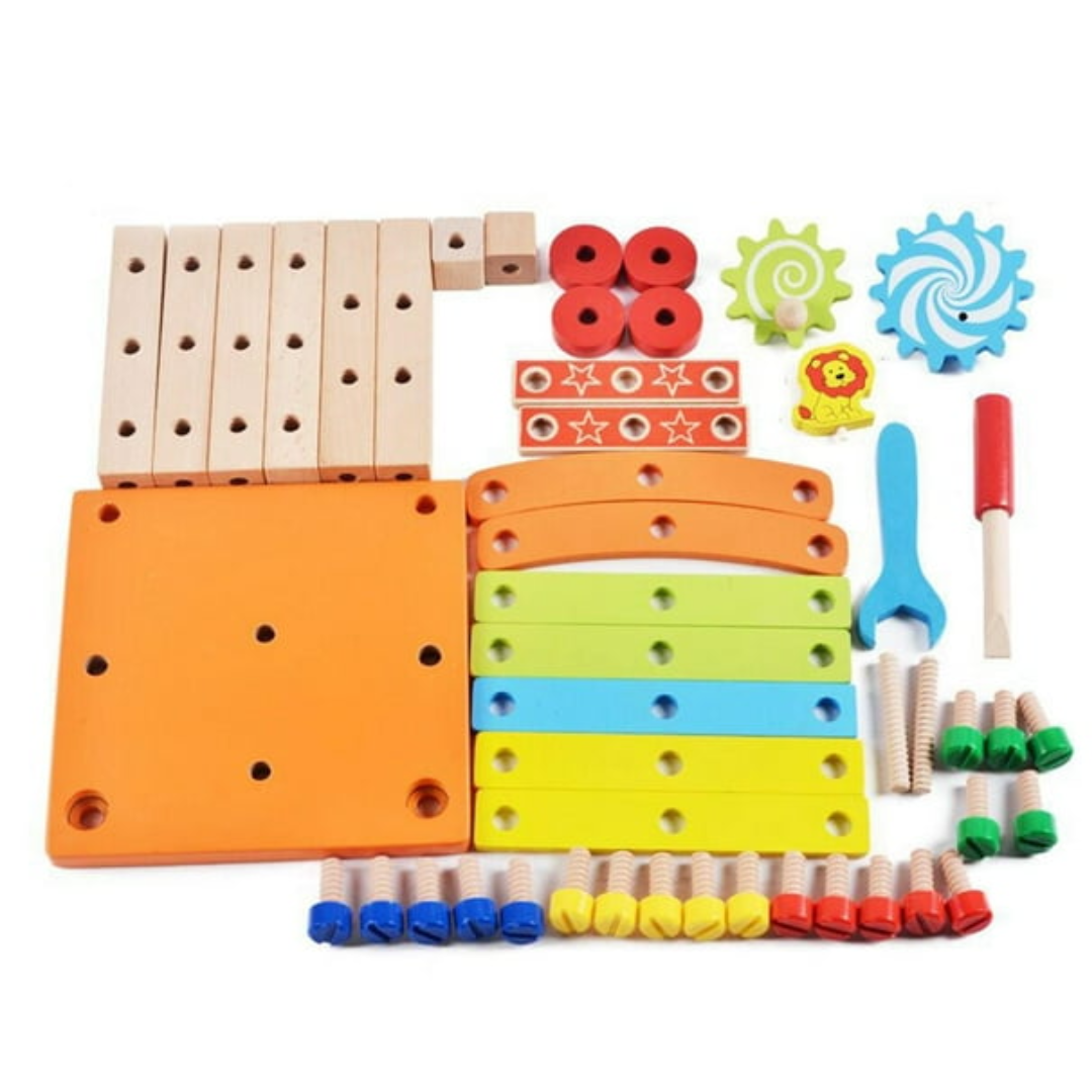 Dieses Montessori-Spielzeug wird mit einem Set aus echten Werkzeugen geliefert, um ihnen zu helfen, ihre Kreationen zu bauen, zu reparieren und auseinanderzunehmen, während sie ihre Kreativität, Hand-Augen-Koordination, Feinmotorik und logisches Denken entwickeln.