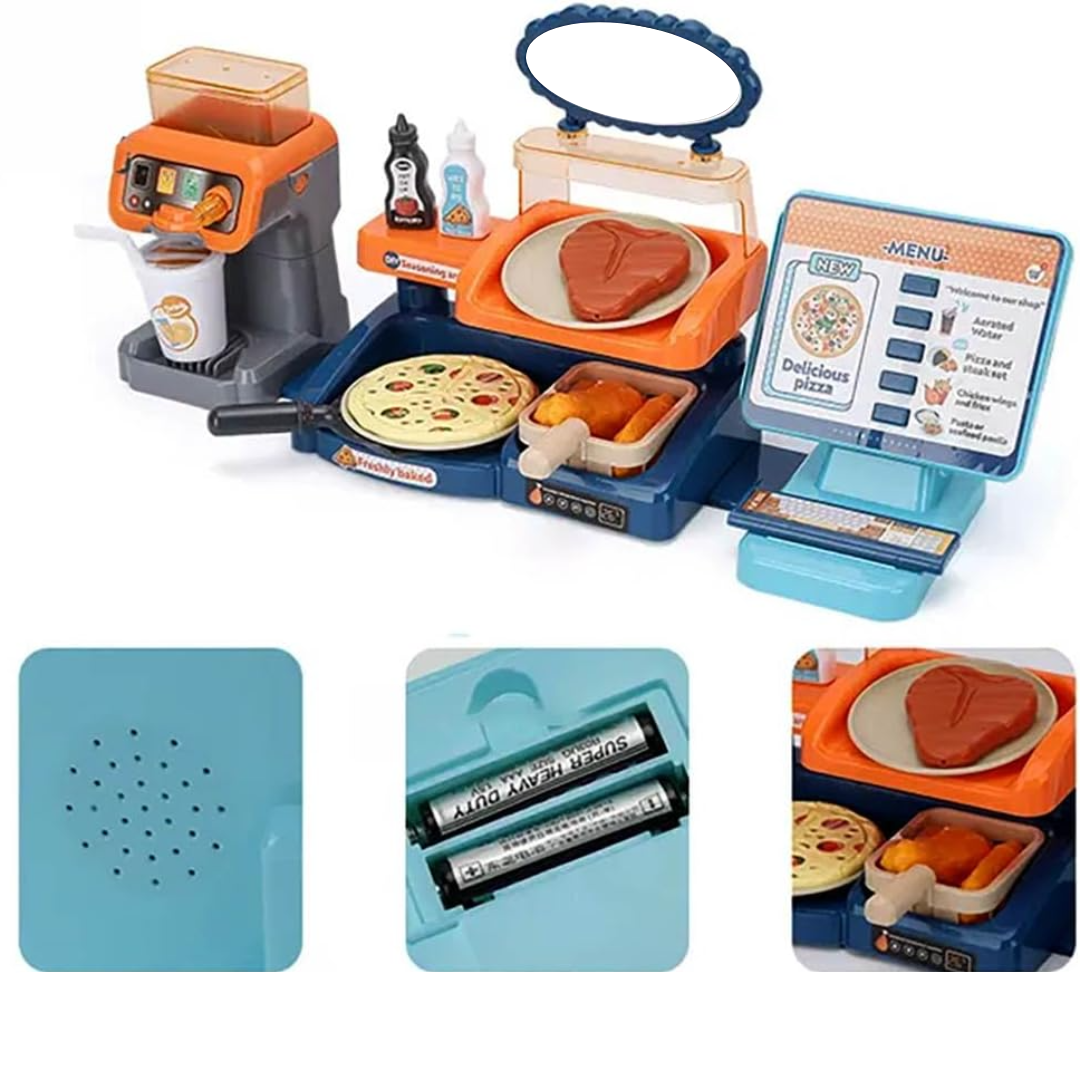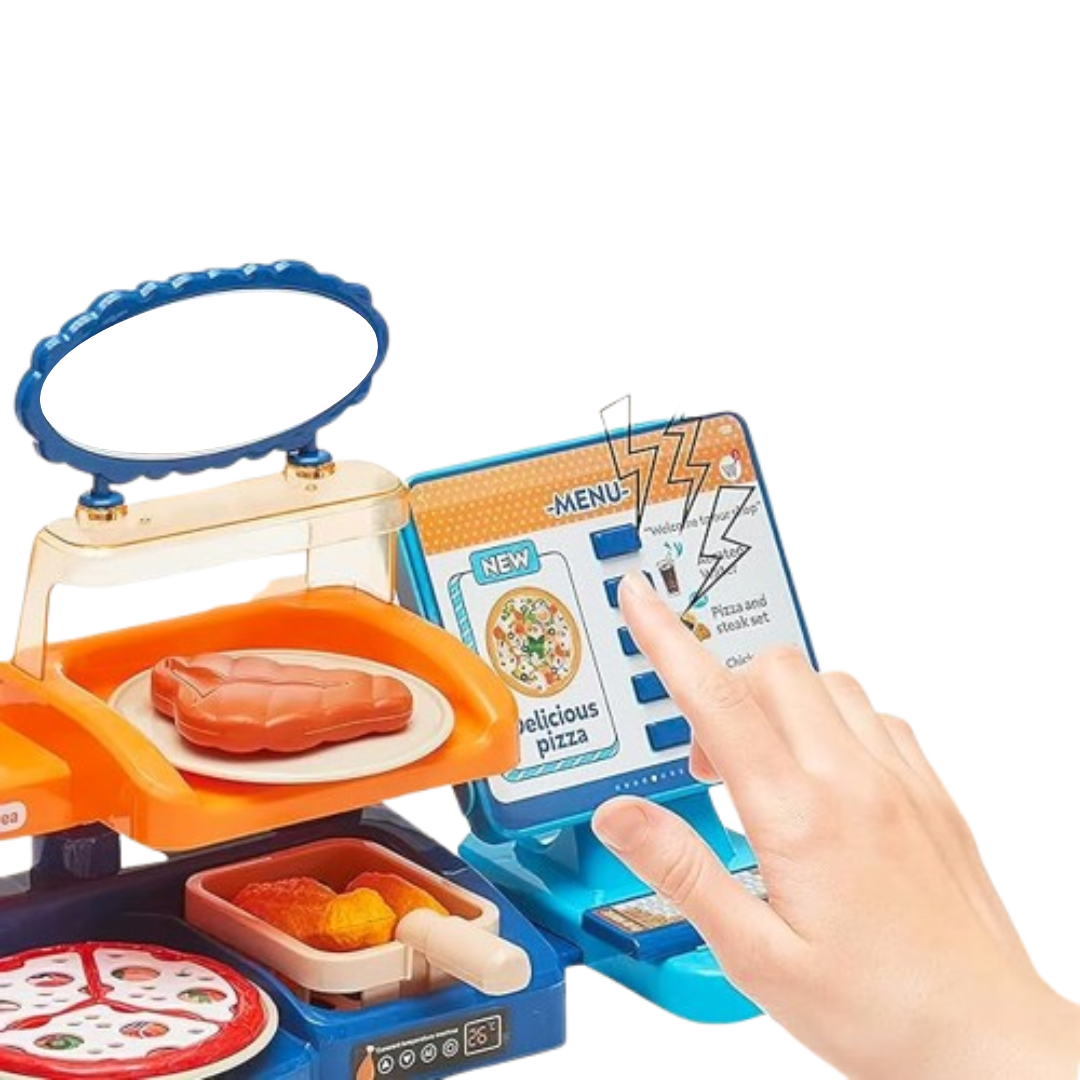 - Enthält: Pizzaboden, verschiedene Beläge, Pizzaschneider und Komponenten für die Geschäftseinrichtung.
