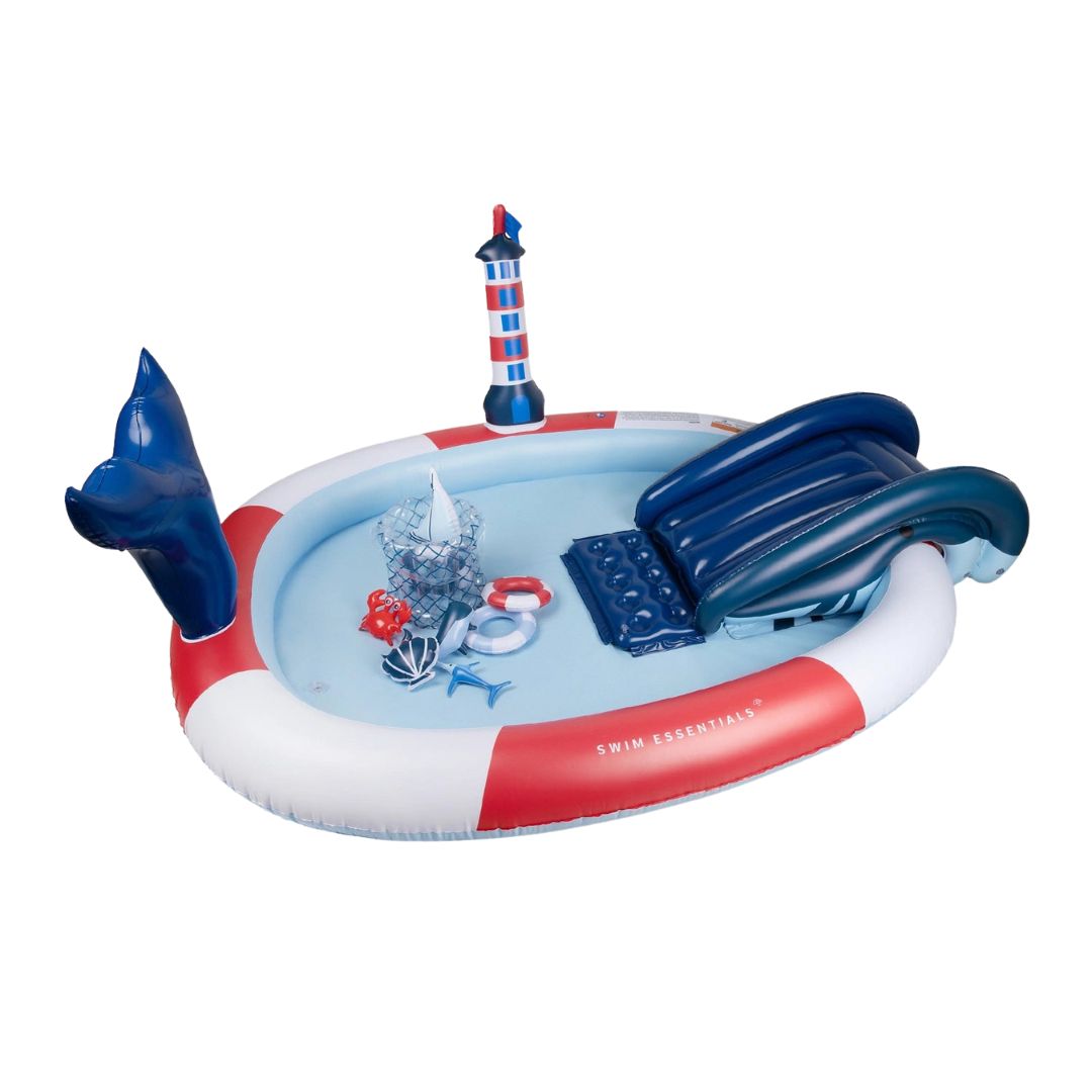 WhaleSplash verwandelt sonnige Tage in ein spritziges Abenteuer für Kinder ab 2 Jahren. Geformt wie ein freundlicher Wal in kräftigem Rot und Weiß, bringt dieses aufblasbare Planschbecken erfrischenden Spaß in Ihren Garten, auf die Terrasse oder in den Urlaub — fördert das Wasservertrauen und freudige Bindungen durch Spiel.